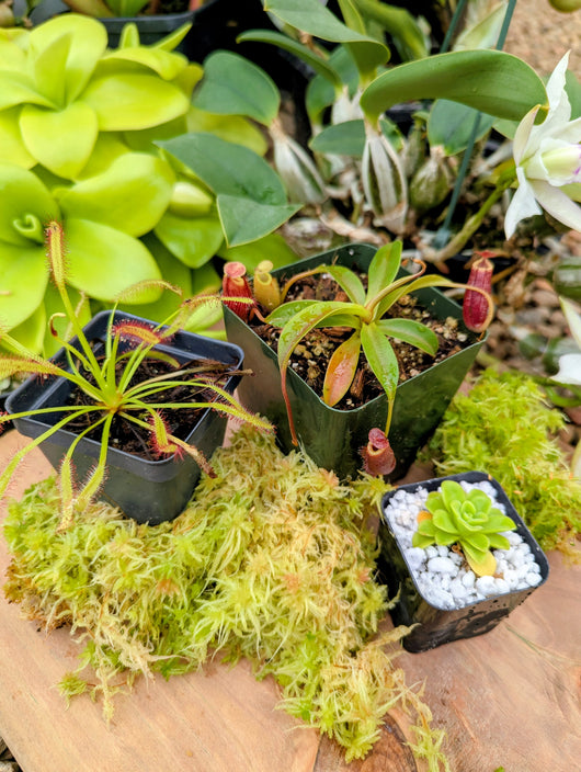 A small, curated mix of carnivorous plants that are as fun to watch as they are easy to grow. Each bundle includes a selection of beautiful varieties—like pitcher plants, sundews, pings, and sometimes an air plant—chosen for their charm and simplicity. Great for beginners, gifting, or anyone who wants something a little different on their windowsill.
