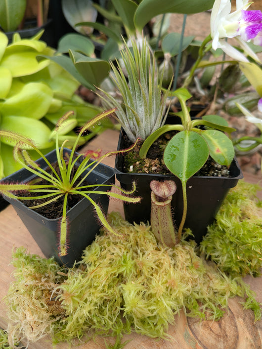 Bundle 4 includes an air plant, Drosera capensis and Nepenthes burbidgeae x robcantleyi BE-3577